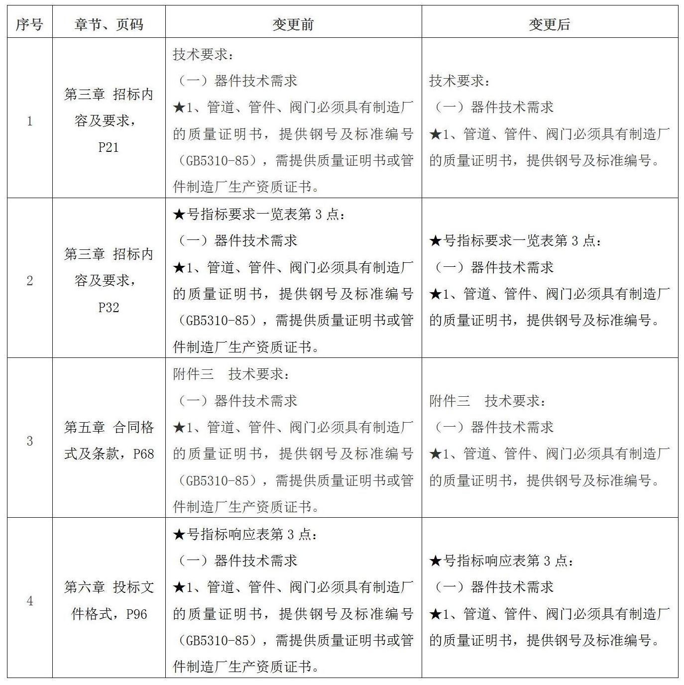 一、現(xiàn)對南寧卷煙廠2023年烘絲機蒸汽管道優(yōu)化改造(項目編號:GXTZ-ZB-2023第(729)號)發(fā)布的招標文件做出如下變更: