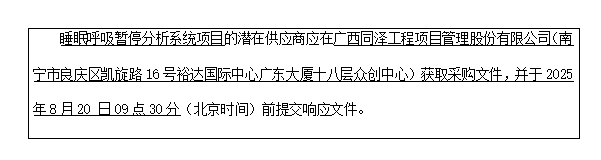 6.采購需求:睡眠呼吸暫停分析系統(tǒng)項目1項。具體內容詳見本競爭性磋商文件。
