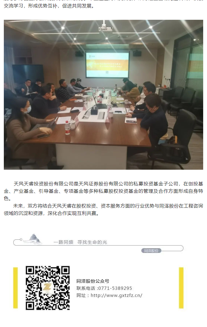 合作交流 | 天風天睿投資股份有限公司到訪同澤股份座談交流