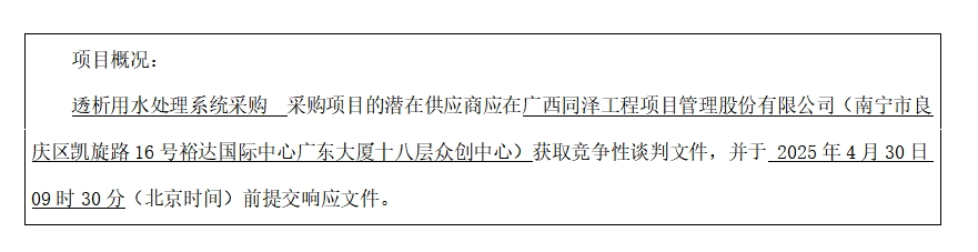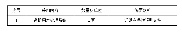 項目名稱:透析用水處理系統采購
