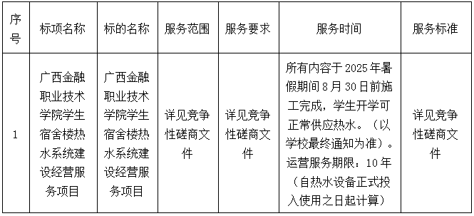 二、項(xiàng)目名稱:廣西金融職業(yè)技術(shù)學(xué)院學(xué)生宿舍樓熱水系統(tǒng)建設(shè)經(jīng)營(yíng)服務(wù)項(xiàng)目
